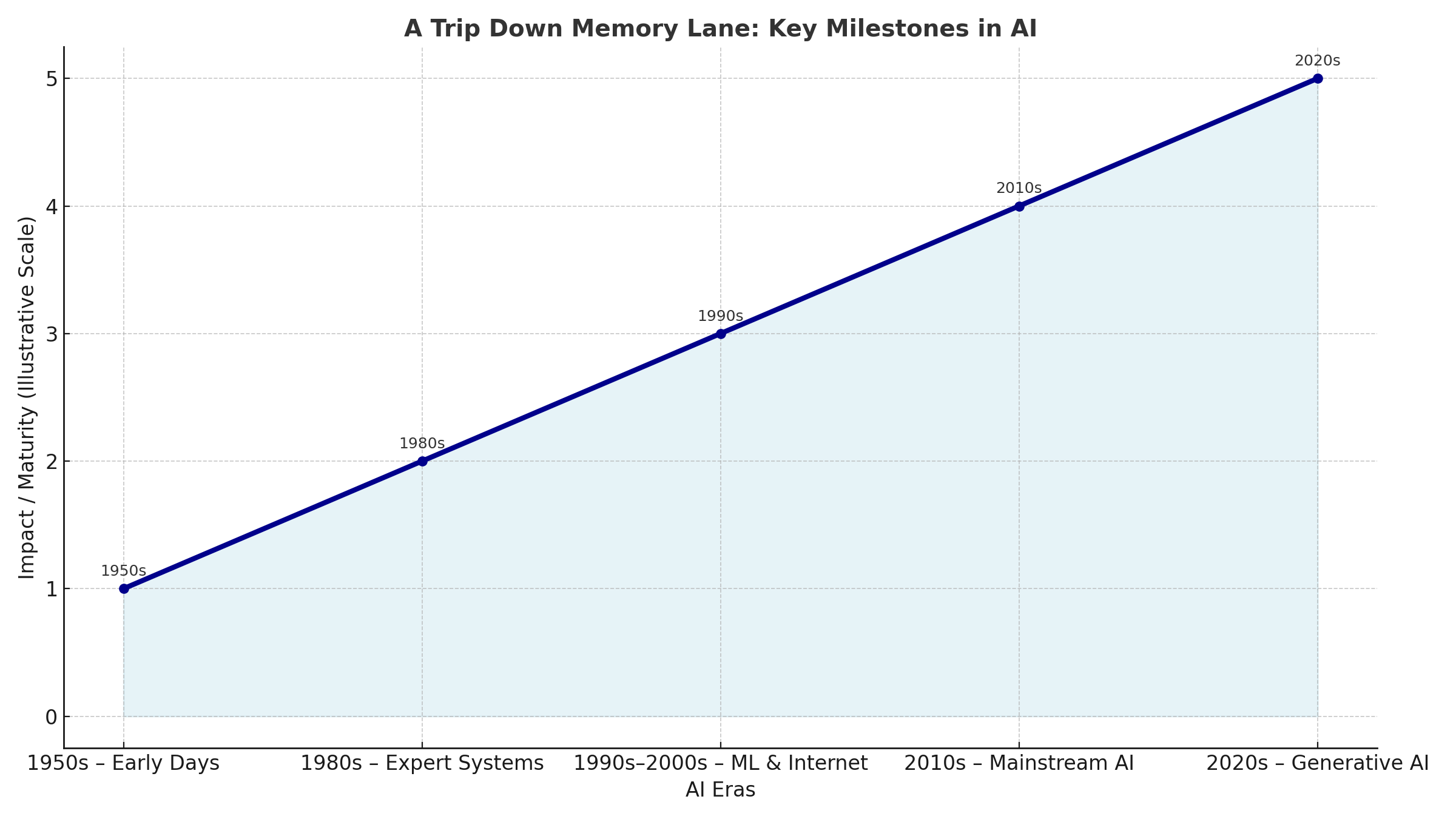 To understand where we’re going, it’s worth a quick glance in the rearview mirror, isn’t it? AI’s journey hasn’t been a straight line; it’s been more like a winding road with its share of potholes and detours. Here’s a whirlwind tour of the key milestones that brought us to today’s AI boom: