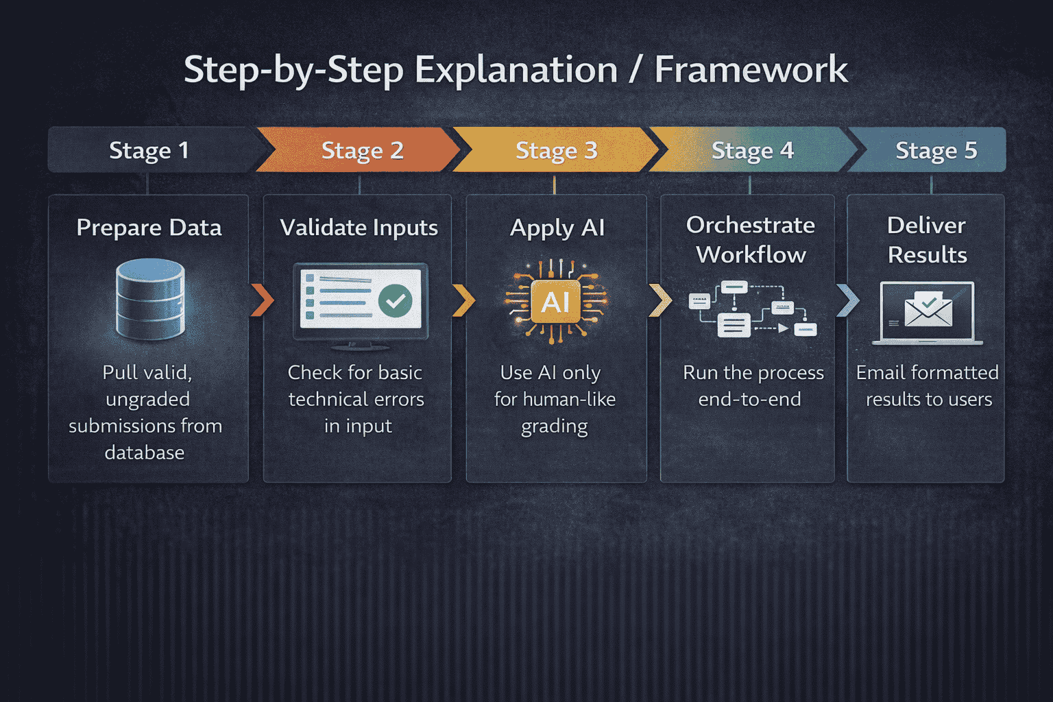 The system starts by pulling only valid, ungraded submissions from a database. This prevents AI from working on incomplete or incorrect data.
